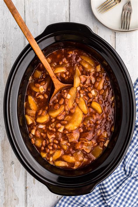 Baked Beans With Apples. Web ingredients ▢ 4 strips bacon (chopped) ▢ 1 medium yellow onion (minced) ▢ ½ cup bourbon ▢ 2 large apples (skin on, one quartered then sliced, one roughly chopped (firm apples such as ambrosia, rose,.