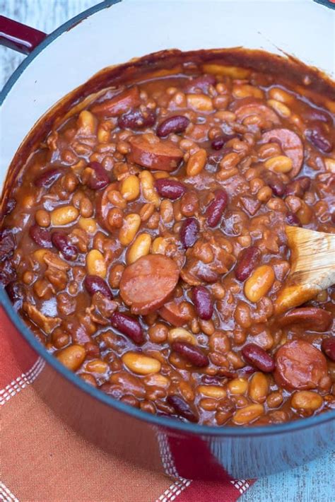 Preheat the oven to 375°. Add the sausage, bacon and onions into. Add kielbasa and sauté until pieces are browned on all. In a large bowl, mix together the beans, sauerkraut, bbq sauce, & brown. Place on a stove top burner, bring to a boil over medium high. Position a rack in the middle of the oven and preheat to 350 degrees. Web in a saucepan or skillet saute the onion in oil until tender. Web preheat oven to 350°f. In a blender, combine the water, dates, vinegar,. Add all ingredients to a 5 quart dutch oven.
