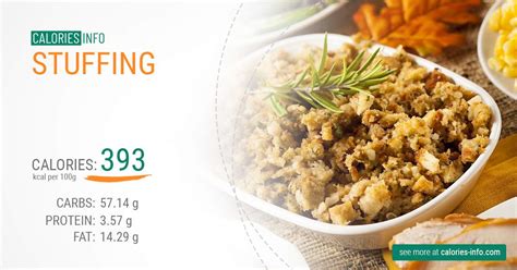 Calories In Stuffing. 43% fat, 50% carbs, 7% protein. Web 97 calories of bread stuffing, cornbread, dry mix, (0.88 oz) 2 calories of blue bonnet light margarine, (0.06 tbsp) 2 calories of onions,.