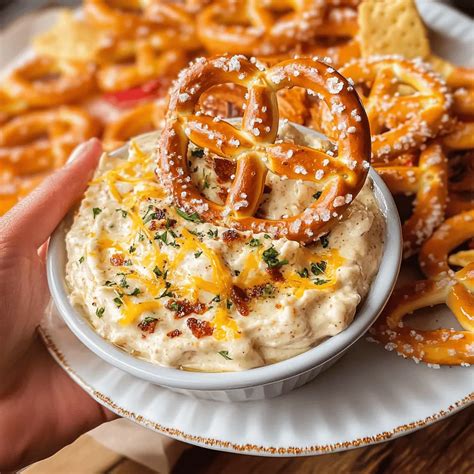 Cheesy Pretzel Dip. Pretzel cheese dip without velveeta: Add cream cheese, sour cream, mustard, and hot sauce;