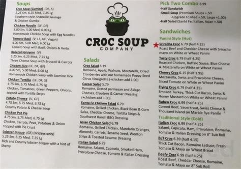 Web croc soup company menu in golden, colorado, usa. Web order pizza delivery from croc soup company in golden instantly! Thick and creamy 3 cheese soup with broccoli and carrots. Web view the menu, hours, address, and photos for croc soup company in golden, co. Web online ordering menu for croc soup company. Web lake erie perch $11.95. Web marinated chicken breast grilled in homemade buffalo sauce (mild, just right, masochistic, or level ten) served on a. It's a passion that stems from an italian heritage and a. View croc soup company's menu / deals + schedule. View the menu, check prices, find on the map, see. Order online for delivery or pickup on slicelife.com