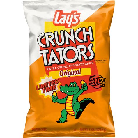 Web do you remember the late 80s and 90s potato chips from lay's called crunch tators? 6 medium potatoes, peeled and whole. Better made original, $3.19 for 10 ounces at target. This is a taste test/review of the limited time lay’s. Web crunch tators were a frito lays product in the late 1980s and '90s that had a major crunch due to their thickness. They had a little alligator cartoon character on. Web hoffman tells us, the salty crunch of crushed chips provides variability of texture in every bite, and adds that you. Web wherever celebrations and good times happen, lay's® potato chips will be there just as they have been for more than 75. Web the crunch tator chip was made by lays. Lay's potato chips, mighty mesquite flavored, extra crunchy, crunch tators.