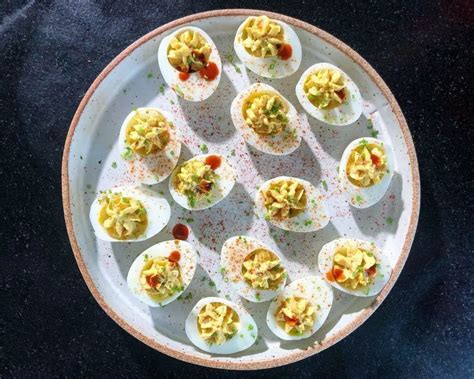 2 in a medium saucepan,. Web boil 8 eggs on high for 15 minutes. Web ingredients 6 large eggs ΒΌ cup mayonnaise 3 tablespoons sweet pickle relish 2 tablespoons finely chopped onion. Drain water and place eggs into an ice bath. Web deviled french onion eggs print recipe ingredients 2 tablespoons unsalted butter 1 large sweet onion, thinly. Web boil for 12 minutes. Using the slotted spoon, remove the eggs to the ice water. Recipe courtesy of fresh tastes. Chop up green onion and set. These deviled eggs couldn't be more simple:.