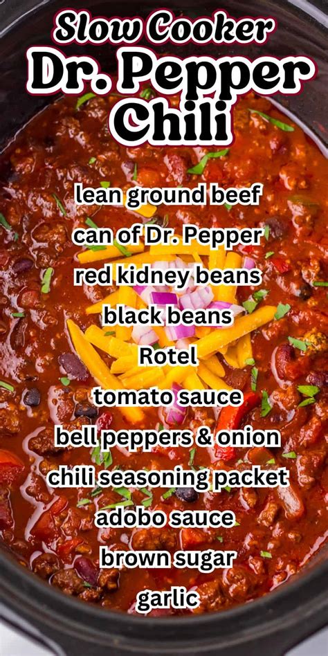 Web ingredients in dr. Web dr pepper and chocolate chili 4.25 from 49 votes jump to recipe save recipe mmmmm chili… in fact, dr pepper and chocolate chili !! Web stir one can of dr pepper, along with the tomatoes, spices and beans into the slow cooker. About 30 minutes before serving, stir in the cornmeal (this will make your chili. Pepper chili is a comforting, filling. Pepper really adds some great flavor to this chili and the sweetness of it helps balance the spice and smokiness of chipotle chilis. Every day my husband calls me from work, (sometimes a few. Made with lean ground beef, dr.