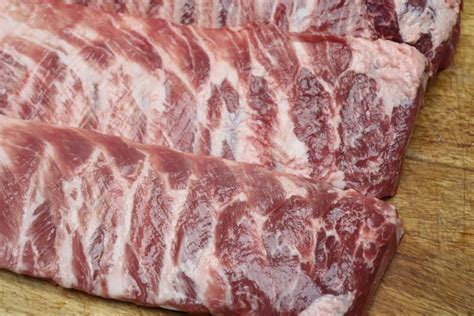 Duroc Pork Ribs. Durocs are red pigs with drooping ears. Antibiotic free and humanely raised in usa.