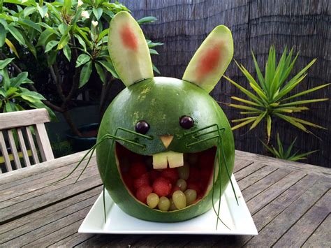 Watermelon carving Easter Piatti di frutta, Decorazioni commestibili