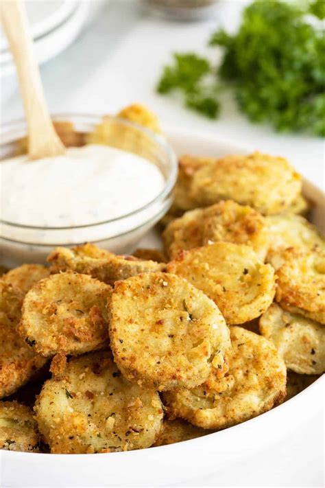 Crispy OvenFried Pickles with Cheddar Cheese Dip Yay! For Food