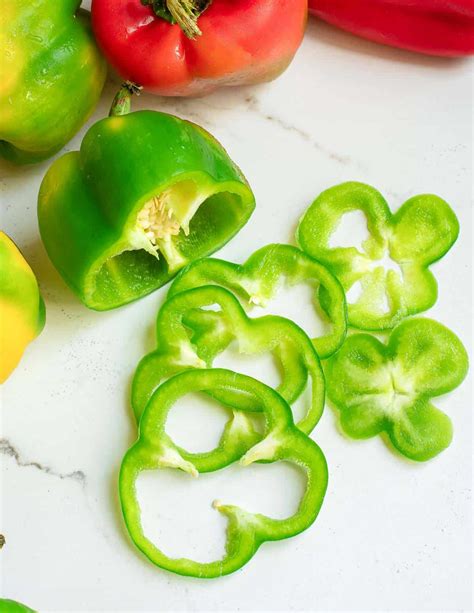 Green Pepper Slice. Web don't be discouraged by its crazy shape—a bell pepper can be tamed just like any other vegetable. Halve and seed large peppers.