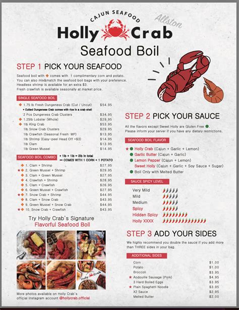 Holly Crab Menu. A great place to celebrate with friends and families! Hungry crab juicy seafood offers a diverse range.