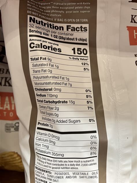 Kettle Chips Nutrition. Web kettle cooked original potato chips great value nutrition facts serving size: Most of those calories come from.