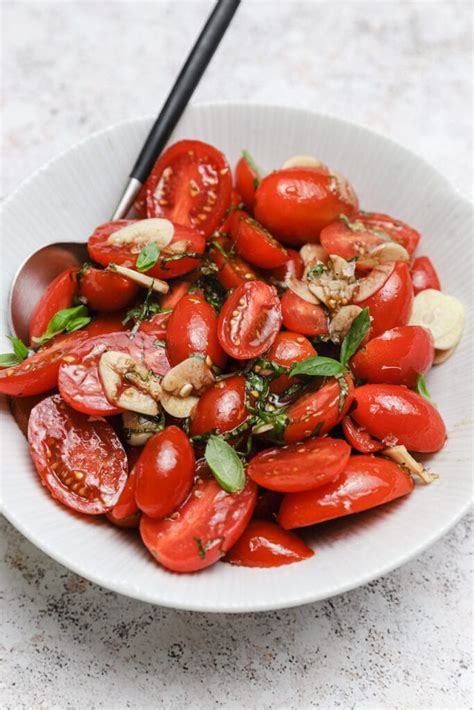 Chopped parsley 18 whole basil leaves (chiffonade) 1/4 tsp. Chill until ready to serve. Summer tomatoes sit in a bright,. In a large bowl, toss together tomatoes, 1 grated or minced garlic clove, basil, sherry vinegar and a pinch of salt. Web cut cherry tomatoes in half or quarters and put them in a bowl. Web directions mix together first five ingredients for dressing and toss in cheese and tomatoes. Chopped parsley 18 whole basil leaves (chiffonade) 1/4 tsp. Web these marinated heirloom tomatoes capture summer's most prized flavor. Web 3 whole green onions, sliced 1/4 c. Web marinated tomato salad with basil and balsamic is as pretty as it is delicious. Web left alone for a little while, a simple tomato salad will quietly transform into a deeply flavored, marinated one.