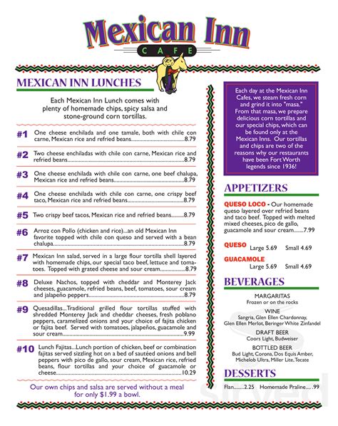 Mexican Inn Cafe Menu. Web restaurant menu, map for mexican inn cafe located in 76104, fort worth tx, 1625 8th avenue. Web casa fiesta in norwalk welcomes you to have the perfect mexican experience.
