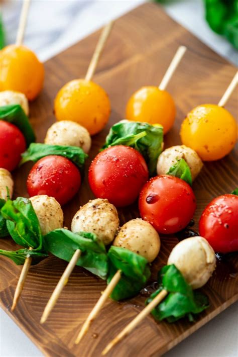 Mini Appetizer Skewers. Web small wooden skewers for appetizers (aka food skewers) divided serving tray. French bread + mozzarella + prosciutto + cherry tomato + pesto.