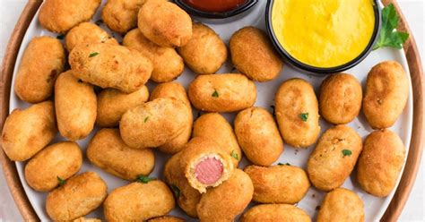 Mini Corn Dogs Cooking Instructions. For 15 mini corn dogs. In a large bowl, whisk the flour, cornmeal, salt,.