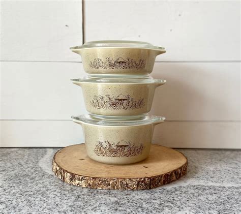 Vintage Pyrex Forest Fancies Mushroom Bowl Set Etsy Pyrex vintage