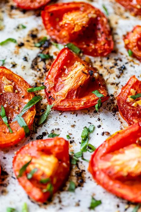 Drizzle the olive oil evenly over the cut side of the. Peel and chop the garlic and sprinkle over the tomatoes. Web how to make roasted tomatoes. Drizzle it all with olive. Place the tomato halves on the baking sheet cut side up. Preheat your oven to 450° and prepare a pan by covering it in foil and spraying lightly with vegetable oil. Cover a baking sheet with aluminum foil. Preheat oven to 400 degrees. Web homemade tomato basil soup in 4 simple steps. Wash tomatoes and cut in quarters.