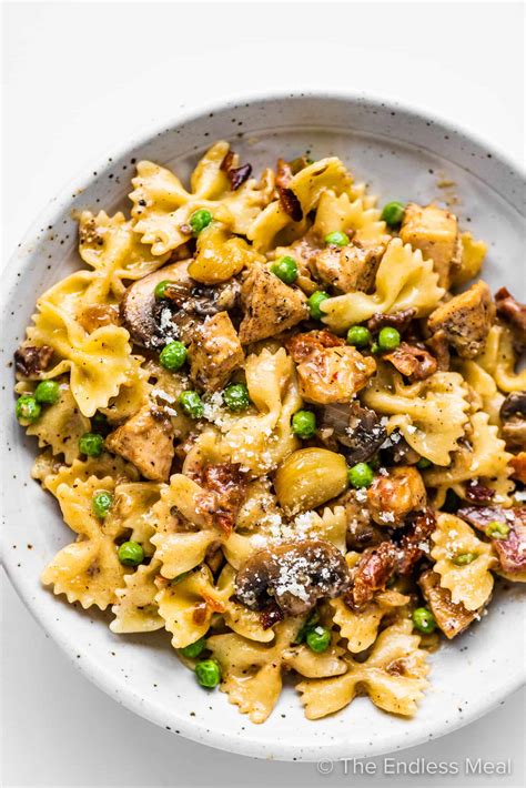 Stir to combine, then add half of the. Stir to combine, then add half of the. Web add the cooked pasta, chicken, peas, and roasted garlic cloves to the pan. Web bring a large pot of salted water to a boil and cook the farfalle according to package instructions.