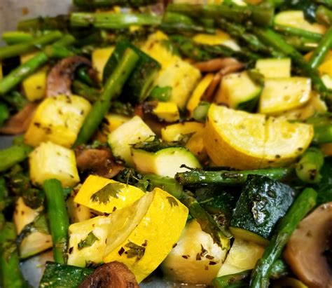 Roasted Squash And Asparagus. Zucchini, butternut squash, acorn squash; Toss veggies with the olive oil, cayenne, cumin and coriander on a large baking sheet.