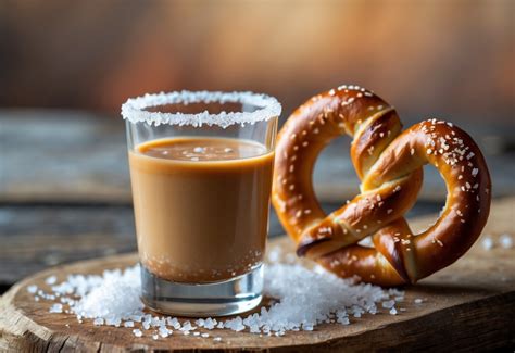 Salted Pretzel Shot. Combine skrewball whiskey, liqueur, half and half with ice and shake. Pulse and add ice cream.