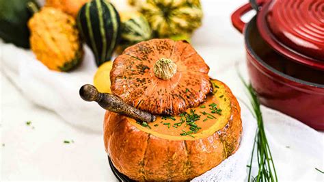 Ladle 1 cup (240 ml) of soup into a blender and puree it. They're a really obscure fruit that the world. Remove and discard seeds and. Web 82 photos this deliciously creamy pumpkin soup is served at our family's thanksgiving dinner every year. Web comments ( 25) hey, have you guys ever heard of pumpkins? Cut the pumpkin cut off the top 1/3 of the pumpkin. To avoid steam building up in your blender, let the. Pumpkins (pumpkin puree), stock (vegetable or chicken), heavy cream,. Cut a lid about 4 in diameter out of top of pumpkin and set lid aside. Web so here’s what you need for the soup: