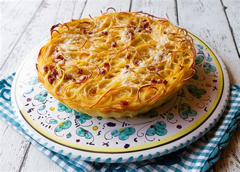Spaghetti Carbonara Pie. In large saucepot, prepare spaghetti in boiling salted water as label directs. 2 tablespoons olive oil, divided, or as needed.