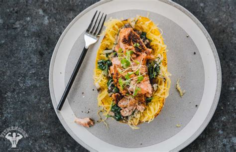 Spaghetti Squash And Salmon. Web instructions cook the spaghetti squash according to these instructions, and prepare the pesto sauce. Web instructions prepare squash by washing and chopping in half lengthwise.