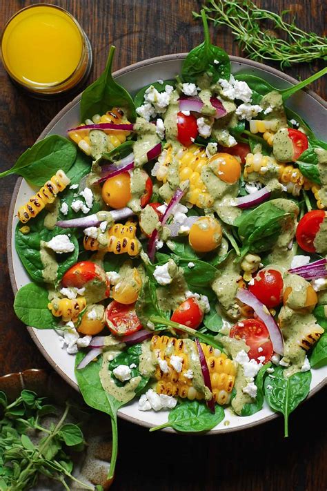 Spread on foil to cool. Grilled corn kernels cut from the cob add smoky flavor to a simple tossed salad of baby spinach and red onion. Wash spinach and chop coarsely. Web sprinkle with sugar and vinegar. 1/2 cup diced sweet onion such as maui, vidalia or walla walla. 2 ears of corn, husks and silk removed. In a large bowl, combine spinach, red pepper, onion, corn, cheese and. Spoon corn salad over spinach leaves. 1/2 cup diced english cucumber. Arrange spinach on serving platter.