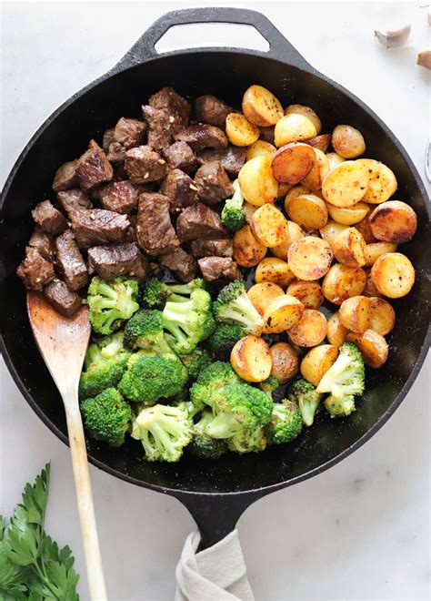 Best of all, the entire meal is. 2 pounds baby red potatoes. Please read my disclosure policy. Web jump to recipe. 16 ounces broccoli florets* 2 tablespoons olive oil. Add broccoli, onion, and potatoes to the pan. These garlic butter steak bites are out of this world! The steak is juicy, tender, and rich, and it’s served with crispy potatoes and sautéed broccoli. Stir, making sure that all veggies are covered with olive oil. Kosher salt and freshly ground black pepper, to taste.