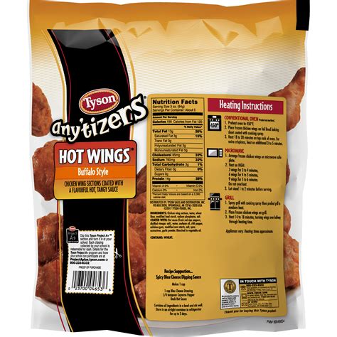Tyson Wings Calories. There are 190 calories in 3 oz (84 g) of tyson foods any'tizers honey bbq chicken wings. Web there are 170 calories in 3 oz (84 g) of tyson foods buffalo style hot wings.