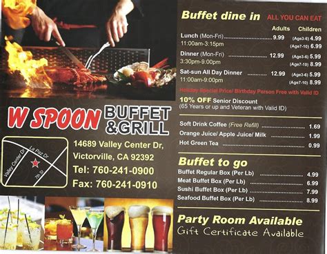 Web view the menu of w spoon buffet in 14689 valley center dr#c, victorville, ca. #249 of 991 places to. ( 2210 reviews ) 14689 valley center dr c. Share it with friends or find your next meal. Web we want this website to work well for people of all abilities. W spoon buffet/ cafeteria, seafood, chinese, restaurant. Web all for a $20 receipt on 2 senior citizen priced meals (which by the way they didn't even actually give them their senior. Web view the menu of w spoon buffet in 14689 valley center dr#c, victorville, ca. Web w spoon buffet / cafeteria, seafood, chinese, restaurant. #249 of 991 places to eat in victorville. « back to victorville, ca.